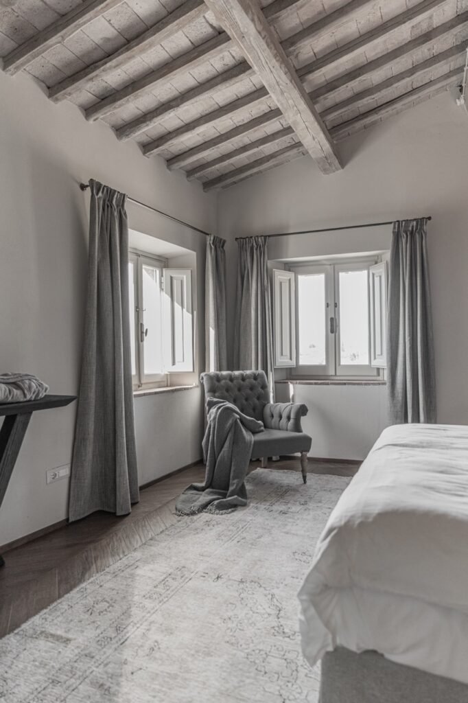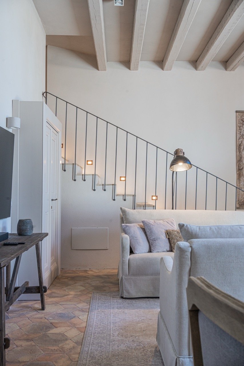 Prima di scattare serve una lettura progettuale dello spazio. In un casale di pregio, materiali e volumi non sono fondale: sono parte centrale del racconto visivo.